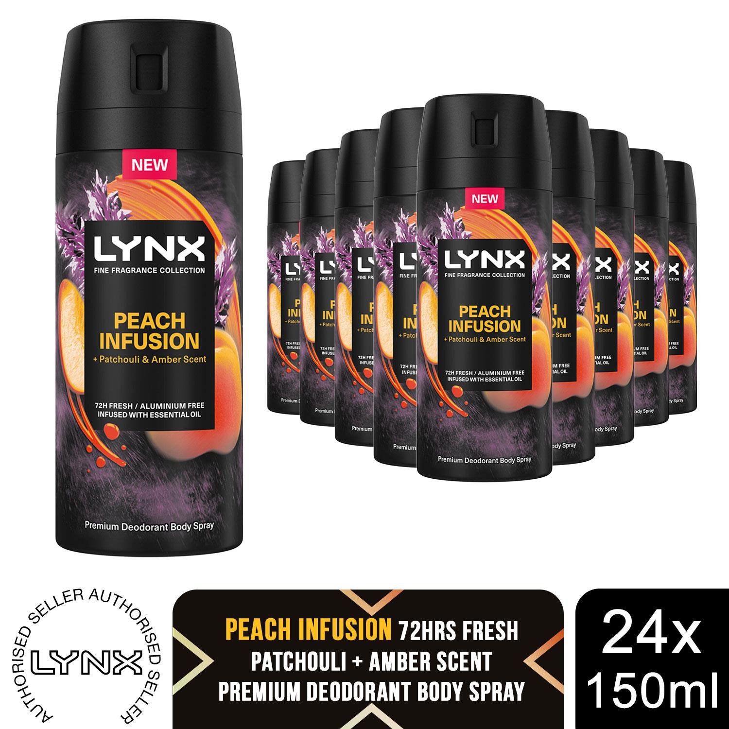Lynx Body Spray Fine Fragrance Collection Peach Infusion for Men 150ml, 24 Pack