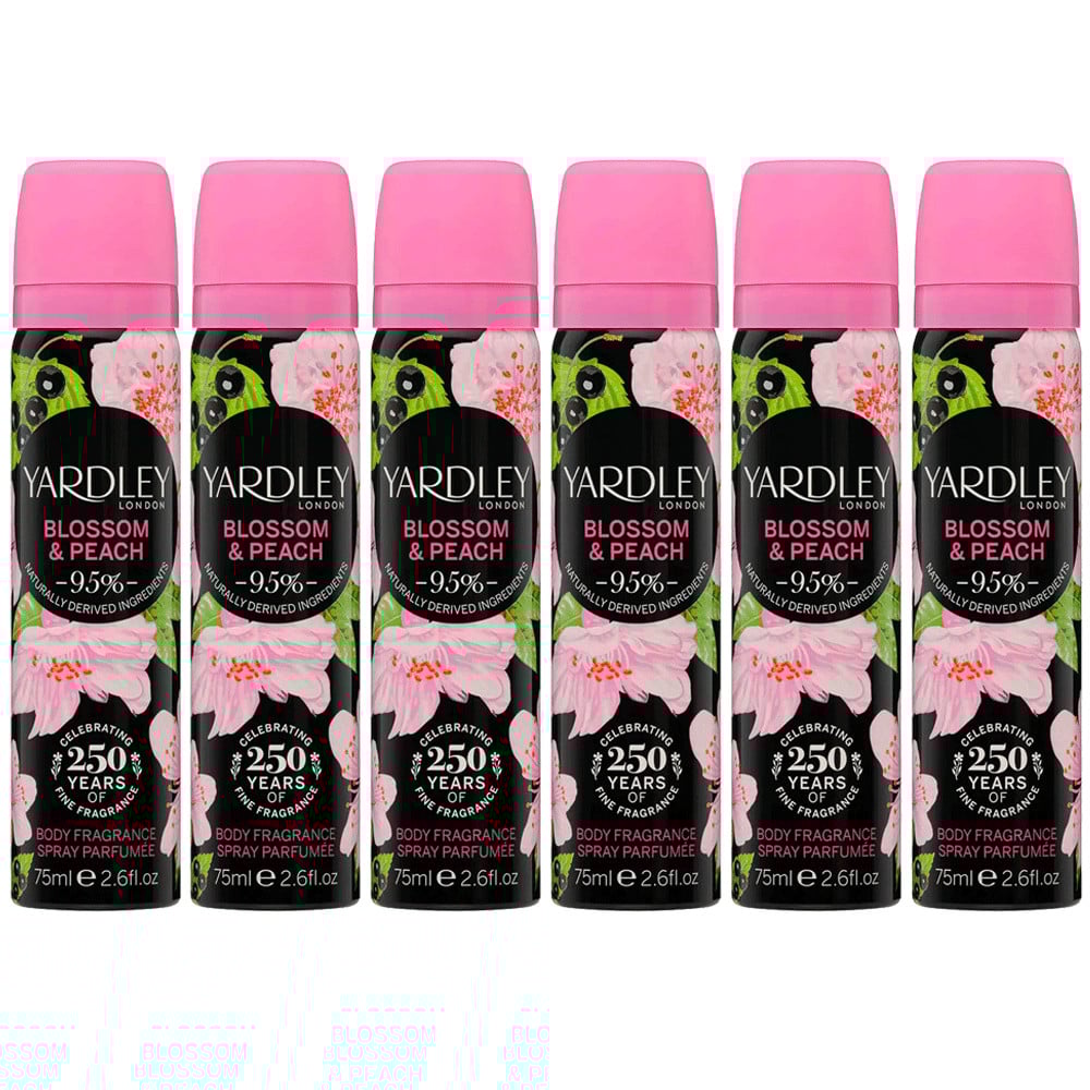 6 x YARDLEY LONDON BLOSSOM & PEACH BODY SPRAY 75ml