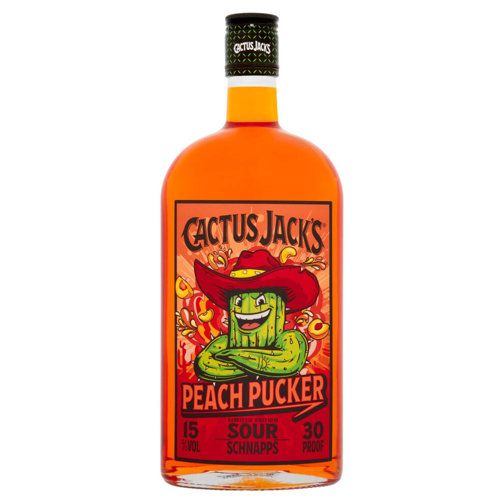 Cactus Jack's Peach Pucker flavour sour schnapps liqueur made for shots, mixed alcoholic drinks and cocktails 700ml 15% ABV