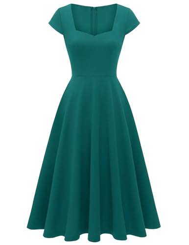 Berylove Cocktail Dress Women's Elegant Rockabilly Dresses Sweetheart Neck Midi Vintage Dress Evening Dress, Peacock Green, S