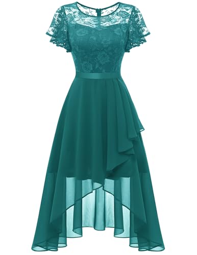 WedTrend Women's Formal Dresses Floral Lace Bridesmaid Dress Hi-Lo Prom Dress Flutter Sleeve Swing Cocktail Dresses for Wedding Guest WT0303PeacockGreenS