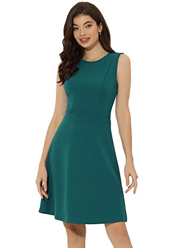 Allegra K Women's Work Dress Solid Color Sleeveless A-line Flare Dresses Peacock Green M