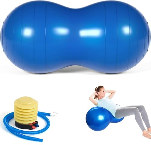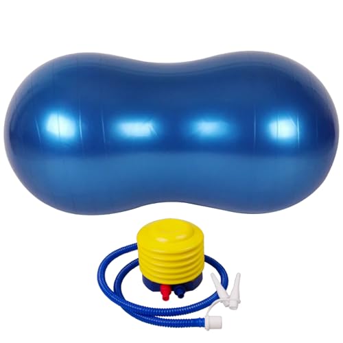 Jorzer Peanut Ball with Pump 35x18in Burst-Resistant PVC Portable Thickened Yoga Ball Flexible Exercise (Uneven, Blue) Peanut, For Kids, Pregnancy