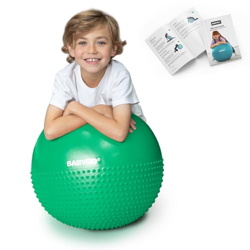 BABYGO® Sensory Exercise Ball | Peanut Ball for Kids Children | Autism Therapy Calming Development Activities Motor Skills | Exercise Book & Pump Included (Exercise Ball, Green)