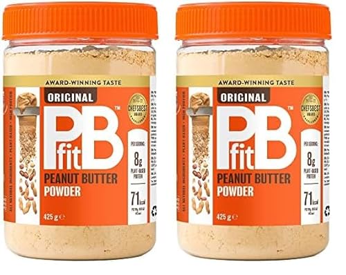 PBfit Peanut Butter Powder - 87% Less Fat, High Protein, Gluten Free Natural Nut Butter Spread - Powdered Peanut Butter from Real Roasted Pressed Peanuts - 425g (Pack of 2)