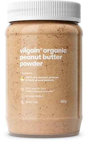 Vilgain 100% Organic Peanut Butter Powder 450g | Sugar-Free with 2x Fewer Calories | Ideal for Smoothies & Porridge | Rich in Protein & Fiber | 46 kcal per Serving