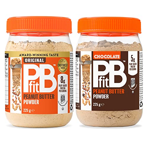 PBfit Peanut Butter Powder - Original & Chocolate - 87% Less Fat, Gluten Free All Natural Nut Butter Spread - Powdered Peanut Butter from Real Roasted Peanuts - 225g (Pack of 2)