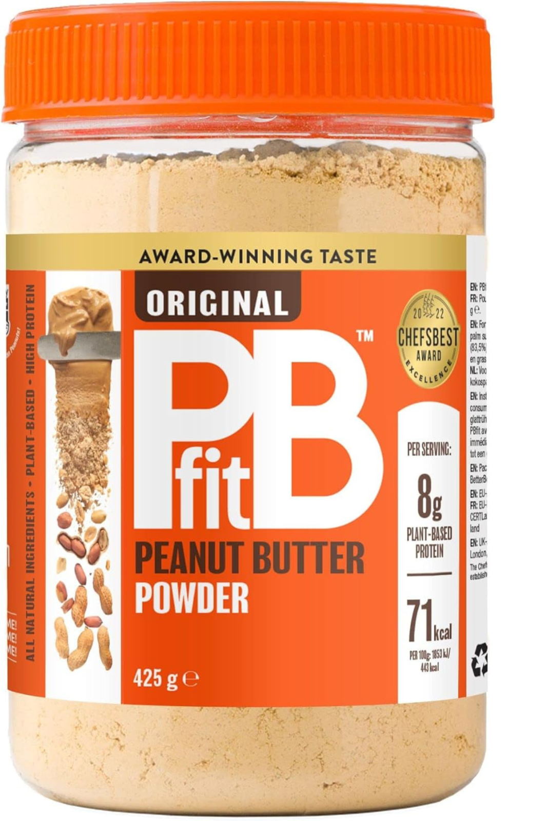 PBfit Peanut Butter Powder - 87% Less Fat, High Protein, Gluten Free Natural Nut Butter Spread - Powdered Peanut Butter from Real Roasted Pressed Peanuts - 425g
