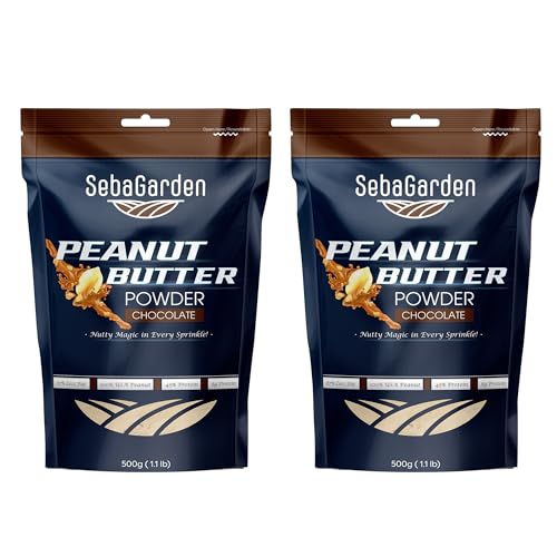 Seba Garden Chocolate Peanut Butter Powder 500g – 87% Defatted, Plant-Based Vegan Protein, Non-GMO, Certified Gluten-Free, Keto Friendly, Low Carb, BPA-Free (Pack of 2)
