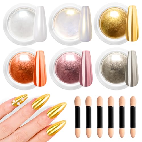 6 boxes Chrome Nail Powder BISHENGYF: Super Metallic Effect Chrome Powder For Nails Rose Gold Silver Laser White Pearl Nail Chrome Powder for Nails Art Decoration