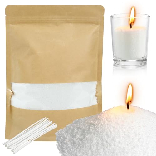 500g White Pearled Candle Sand and Wicks, Warmnest Candle Sand, Refillable Pearl Candles Sands with 20Pcs Wicks, Long Lasting Pearl Powder Snow Wax for DIY Making Birthday Weddings,Partie
