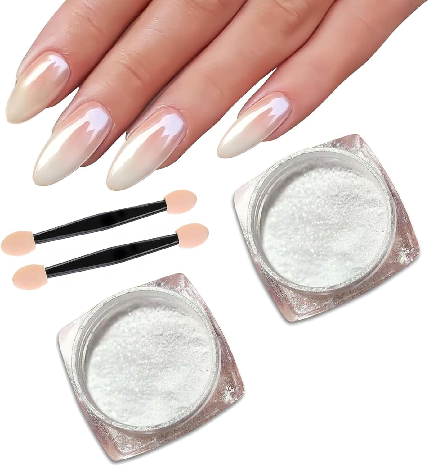 White Pearl Chrome Nail Powder, 2 Pcs Glossy, Iridescent Aurora Powder for Nails