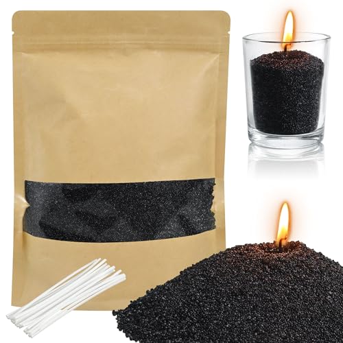 500g Black Pearled Candle Sand and Wicks, Warmnest Candle Sand, Refillable Pearl Candles Sands with 20Pcs Wicks, Long Lasting Pearl Powder Snow Wax for DIY Making Birthday Weddings,Partie