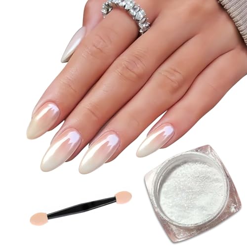 White Pearl Chrome Nail Powder - Glossy, Iridescent & 1PCS-Pearl