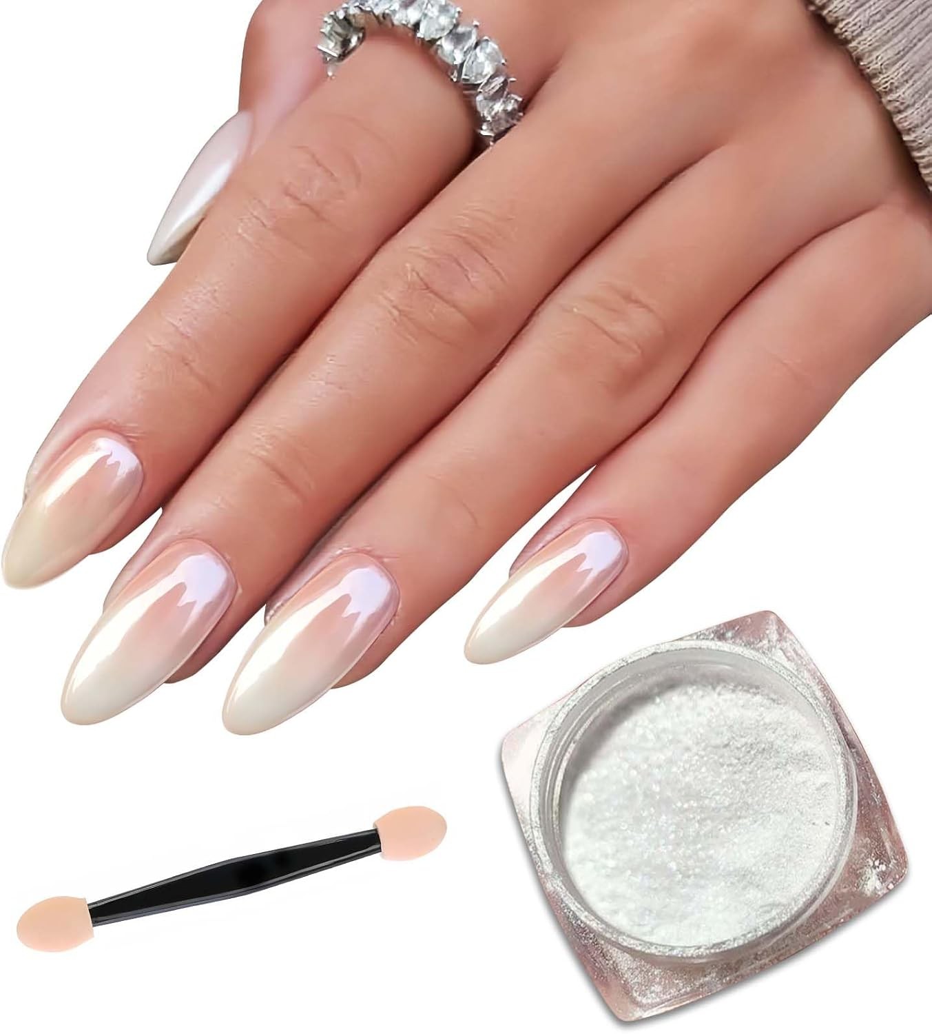 White Pearl Chrome Nail Powder - Glossy, Iridescent & Mirror Effect - DIY Nail Art Accessory with Clear Ice Gloss and Metallic Pigments