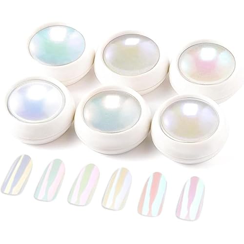 Pearl Chrome Nail Powder BISHENGYF - Iridescent Aurora White Pearl Chrome Nail Powder Metallic Mirror Effect Pigment Rose Gold Chrome Nail Powder for Nails Art DIY Decoration
