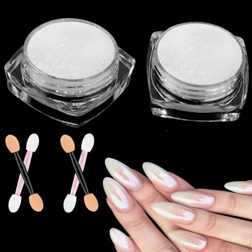 LOPHE Chrome Nail Powder, 2Pcs Upgrade Glassy Pearl Nail Powder Metallic Mirror Glitter Effect, Aurora Pearlescent Nails Chrome Powders, Glazed Donut Nails Powder for Nail-Art Design Decoration