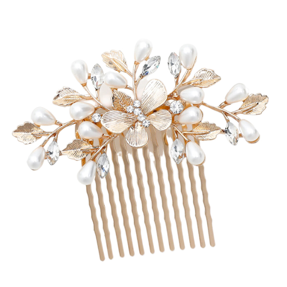 Bridal Hair Comb, Champagne Hair Comb with Pearl Flower Design Sparkling Hair Comb with Crystal Accents Handmade Bridal Headpiece Hair Accessories, Rh