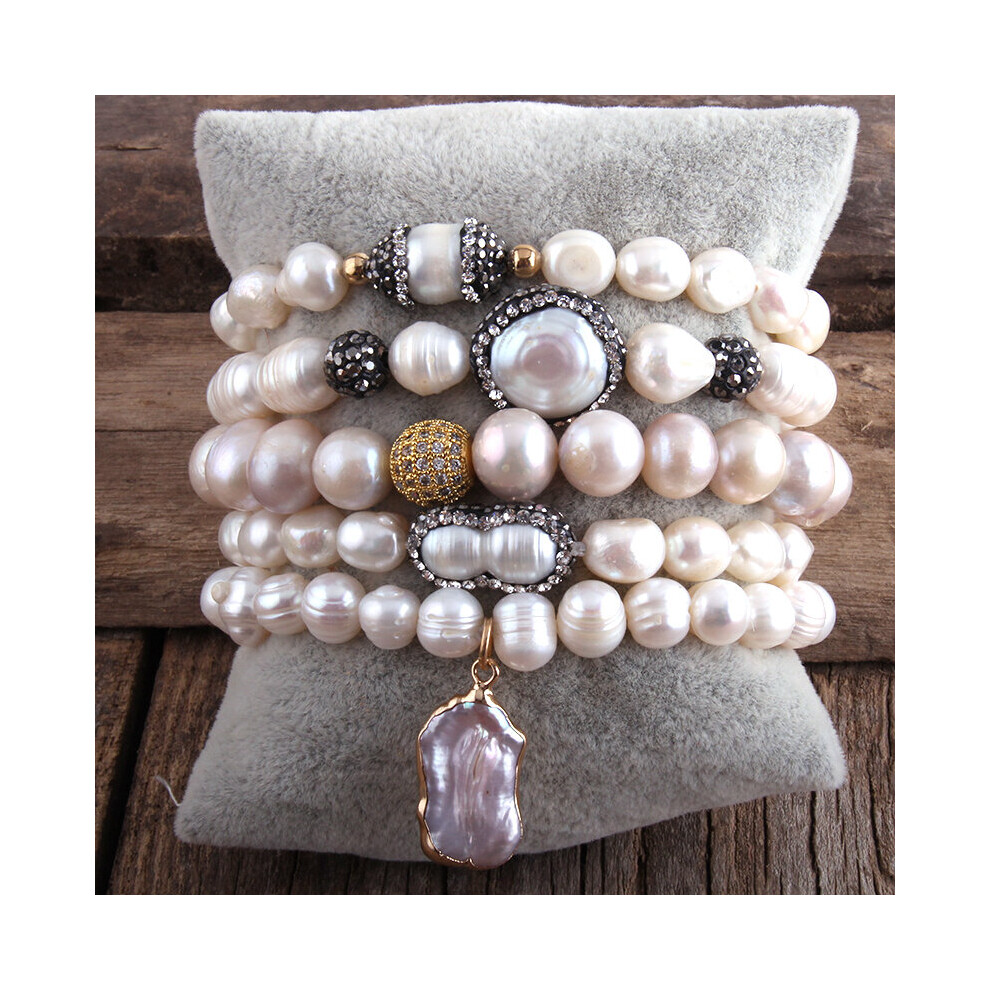 RH Boho Pearl Beaded Bracelet Freshwater Pearl Strand 5pc Bracelets Sets For Women Jewelry Gift Dropship