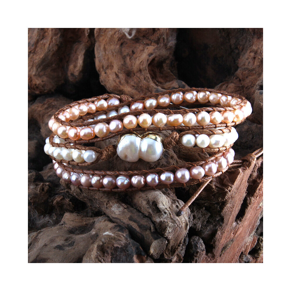 RH Boho Bracelet Pearl Armbander Freshwater Pearl 3 Strands Woven Wrap Bracelets
