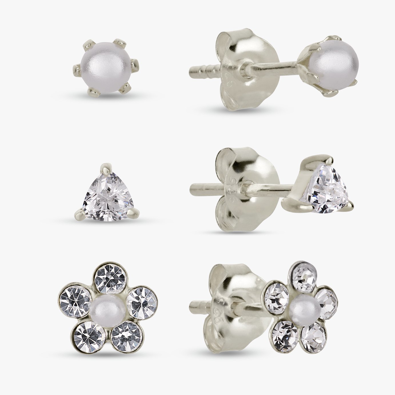 Pearl Posy Stud Earrings Silver