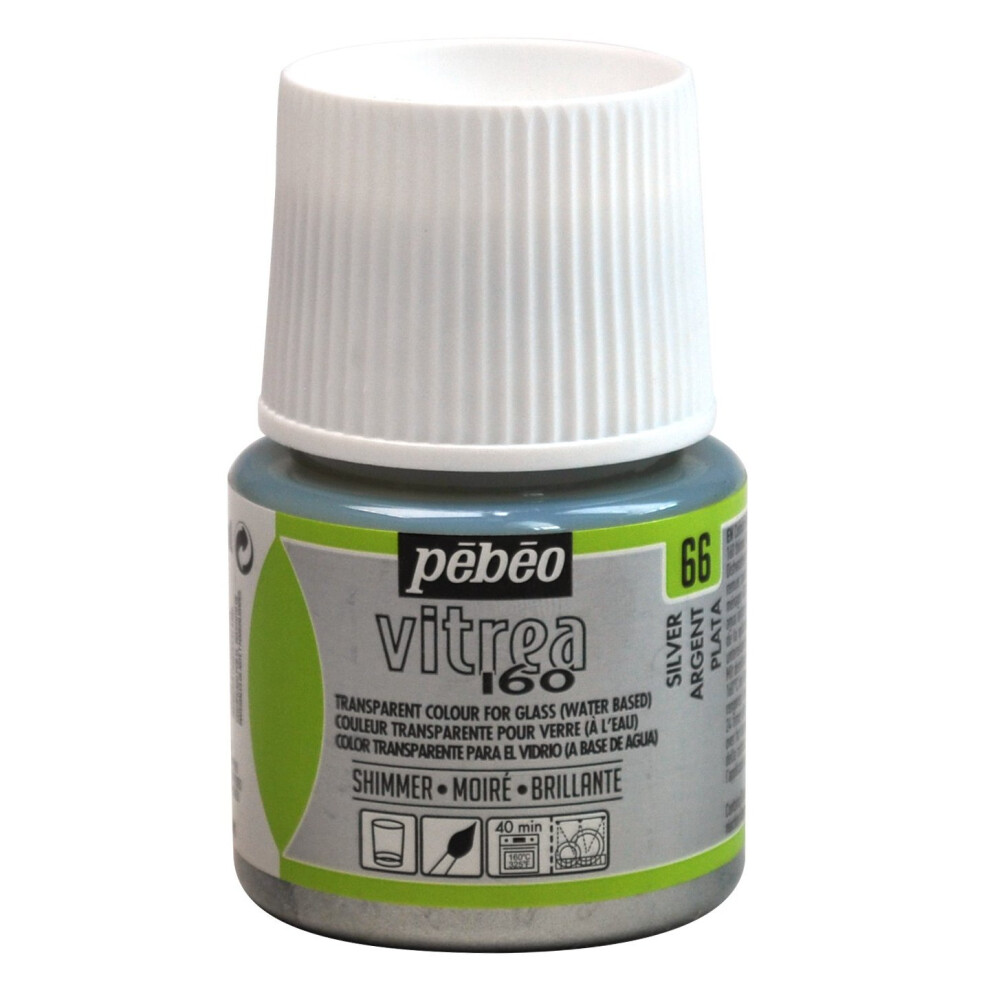 Pebeo 45 ml Vitrea 160-Glass Paint Bottle, Shimmer Silver