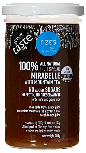 Rizes Greek Delicatessen 100% Natural Mirabelle Fruit Spread with Mountain Tea – No Added Sugar, No Pectin, No Preservatives – Handmade Greek Fruit Preserve 300g, Pack of 2