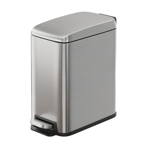 WLIVE Kitchen Bin 50L, Stainless Steel Pendal Bin with Soft Close Lid, Foot Pedal and Removable Inner Bucket, Rubbish Bin for Kitchen, Living Room, Office (Silver, 5L)