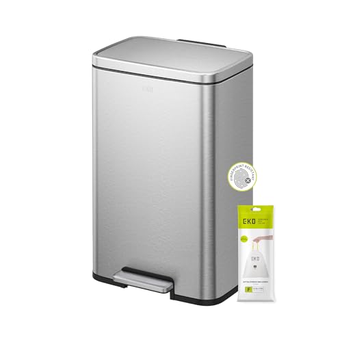 EKO Madison 50L Kitchen Pedal Bin, Soft Close & Stay-Open Lid, Removable Inner Bucket, Fingerprint-Resistant Matt Stainless Steel Rubbish Bin for Kitchen, Household Use, Office