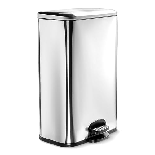 Clevich 50L Kitchen Bin, Stainless Steel Rubish Bin, Pedal Can with Soft-Close Lid, Foot Pedal, Removable Plastic Inner Bucket, Trash Can for Kitchen, Bathroom, Office (grey, 50L)