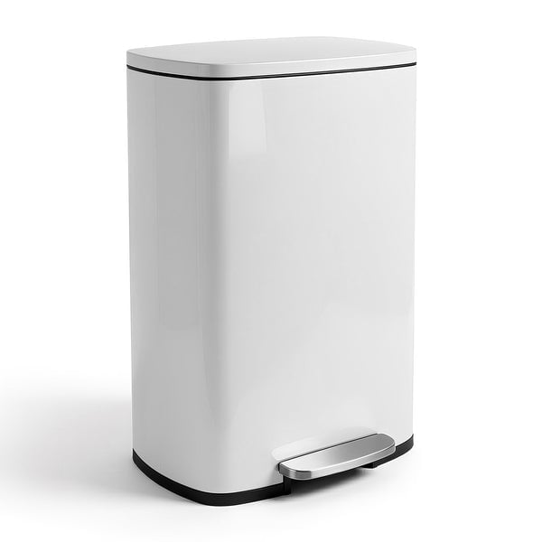 50L Square Stainless Steel Kitchen Pedal Bin - White