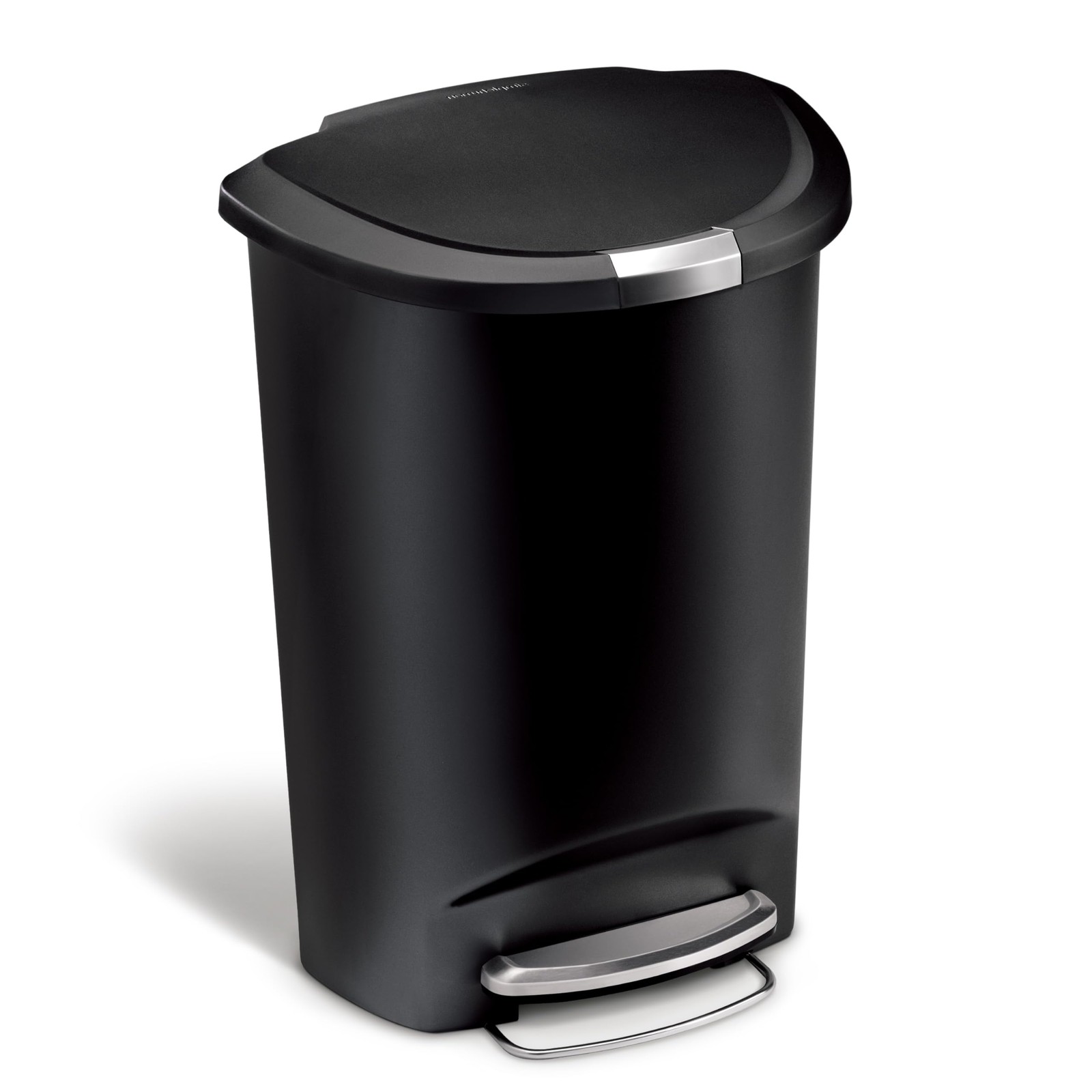 simplehuman CW1355 50L Semi-Round Kitchen Pedal Bin with Lid Lock, Silent Soft Close Lid, Strong Steel Pedal, Stay-Open Lid, Large Capacity, Black Plastic