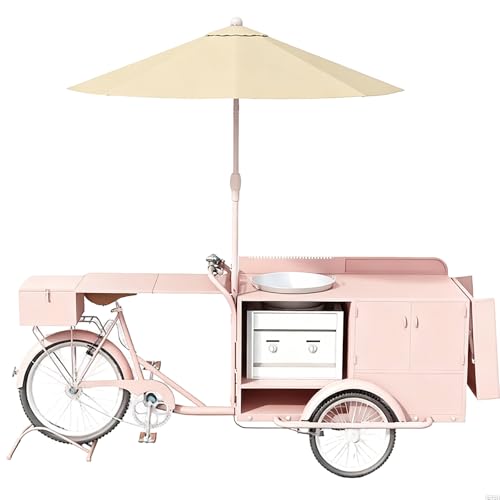 Vending Tricycle Cart - Large Capacity Mobile Pedal Beverage and Snack Cart with Parasol for Various Foods or Flowers