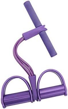 Multifunction Tension Rope Leg Exerciser Sit-up Bodybuilding Expander Elastic Pull Rope Training Equipment, 4-Tube Elastic Sit Up Pull Rope with Foot Pedal Abdominal Exerciser Fitness (Purple)