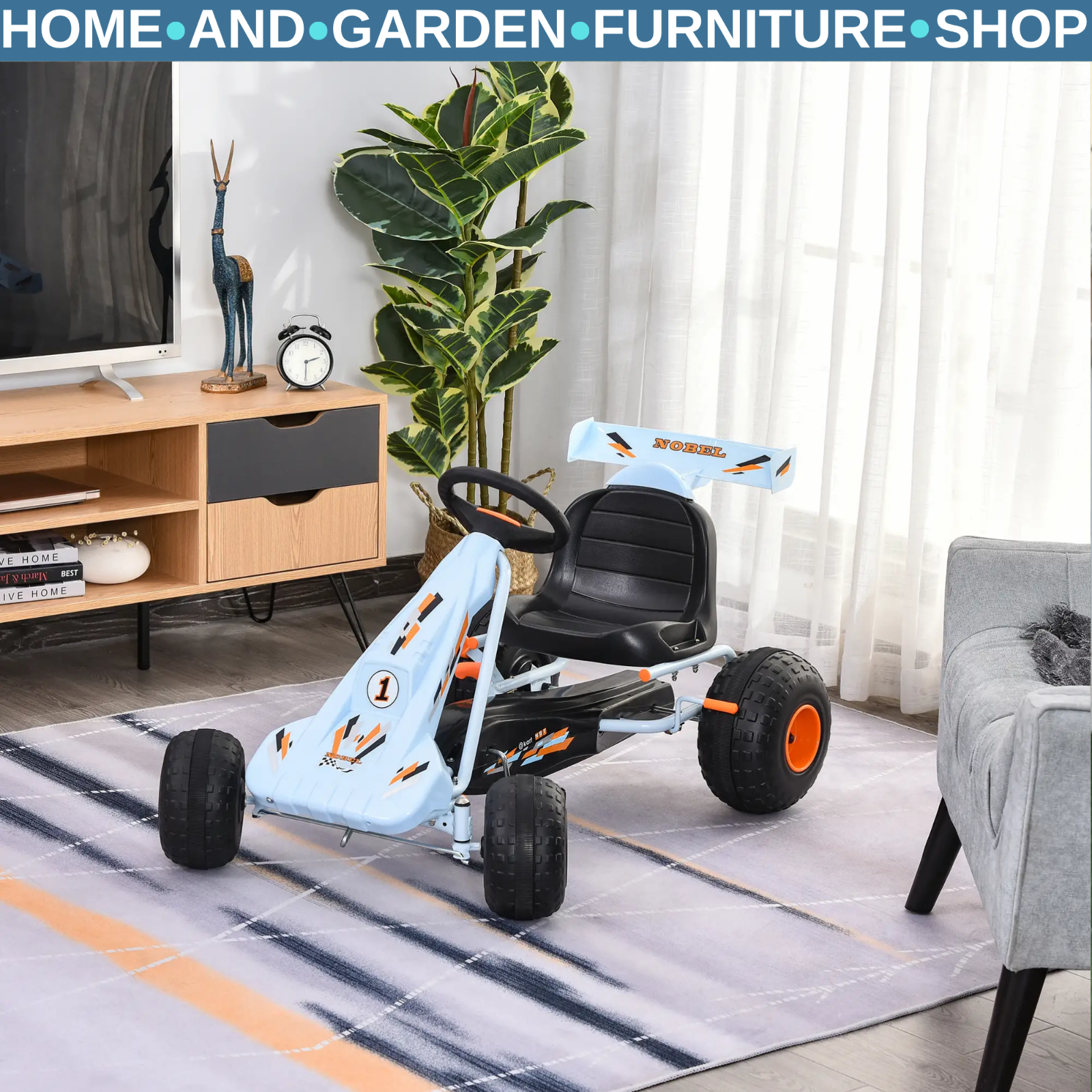 AIYAPLAY Pedal Go Kart, Ride on Racer with Freewheel System, Brake, Non-Slip EVA Wheels, Metal Frame, Go Kart for Kids Ages 3-6 Years, Blue