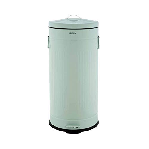 CHARLES BENTLEY Kitchen Bin, 30 Litre, Steel, Round, Retro Style, Kitchen Pedal Waste Bin, Green, Contemporary, Aesthetic, Convenient, Side and Lid Handles, Inner Bucket, Easy Emptying (68.5x29cm)