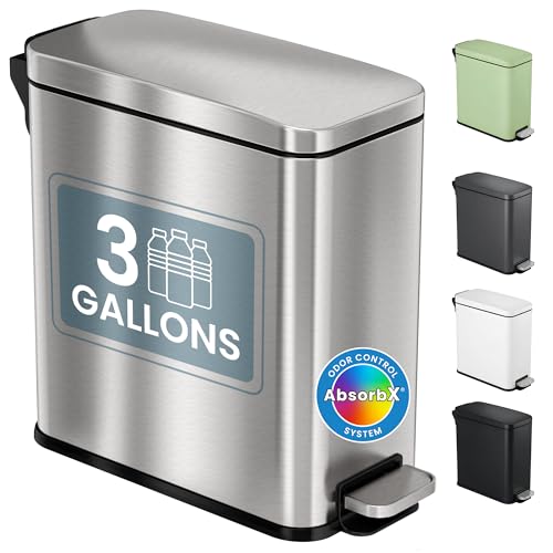 iTouchless SoftStep 11.35 Litre Slim Bathroom Step Dustbin with AbsorbX Odour Filter and Removable Inner Bucket, Pedal Stainless Steel Waste Bin for Bathroom, Bedroom, and Business Office Cubicle