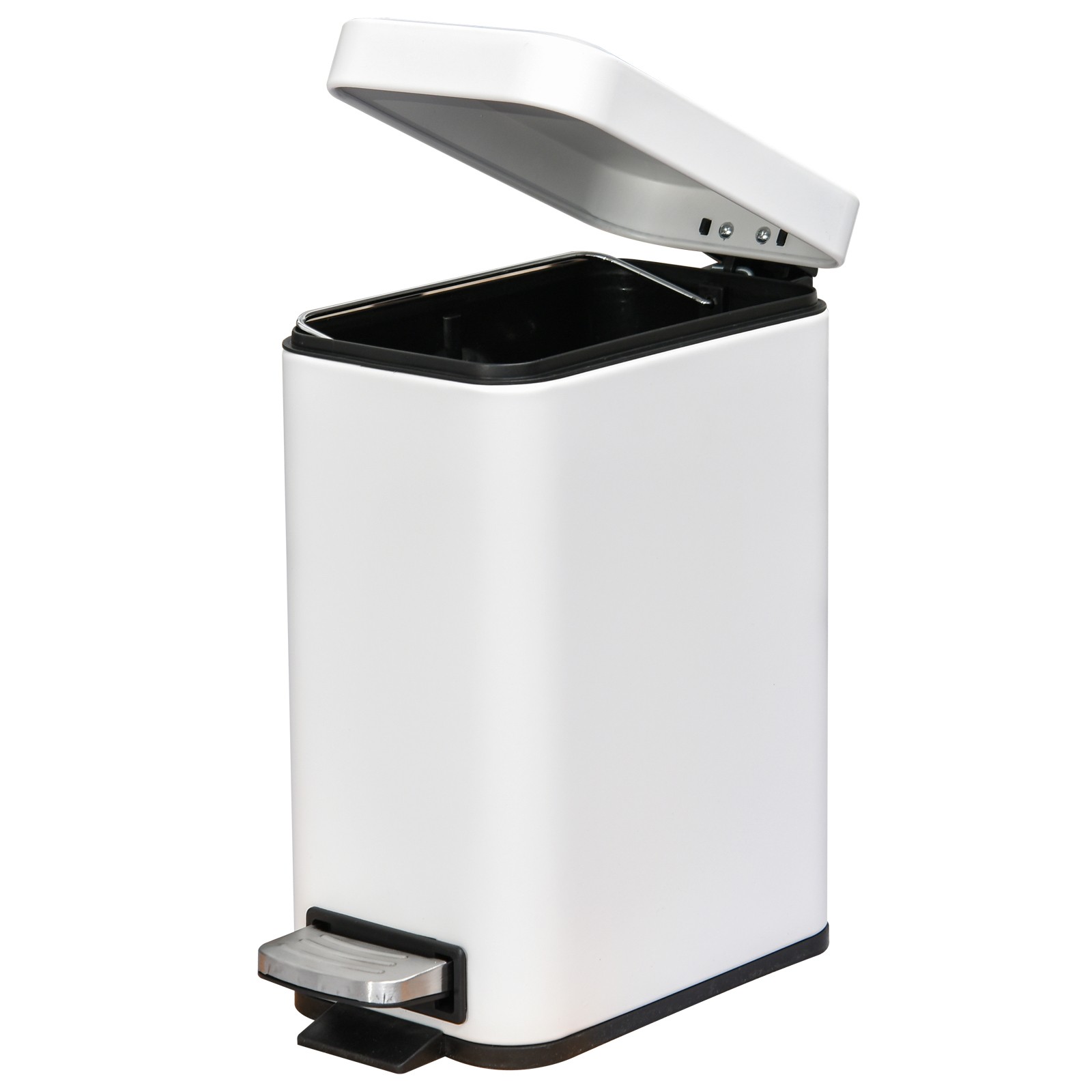 Pedal Bin Waste Rubbish Rectangular Steel White 5L Removable Inner Bin Kitchen