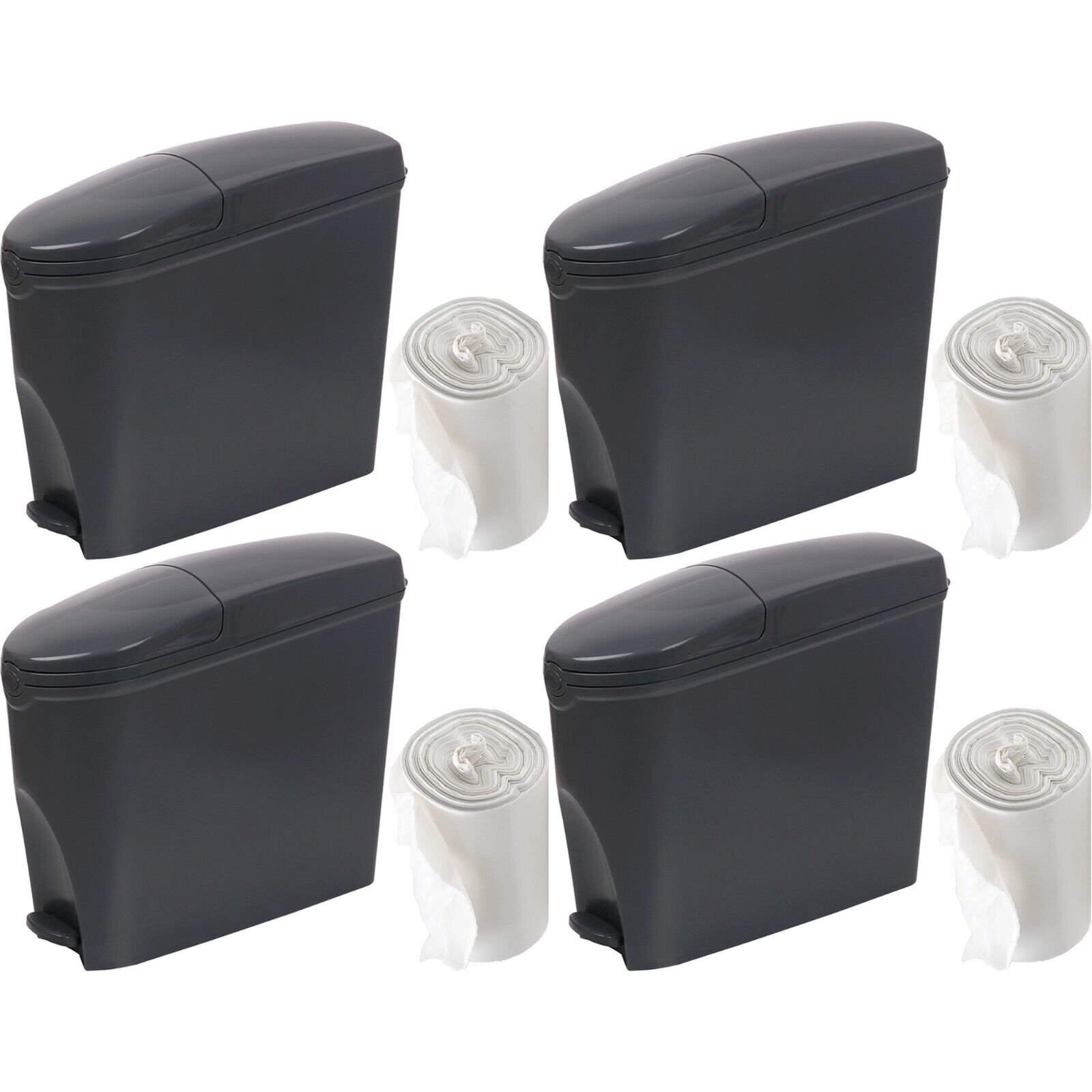 4 x Grey Sanitary Waste Pedal Bin Sani Feminine Hygiene Disposal Toilet 20L
