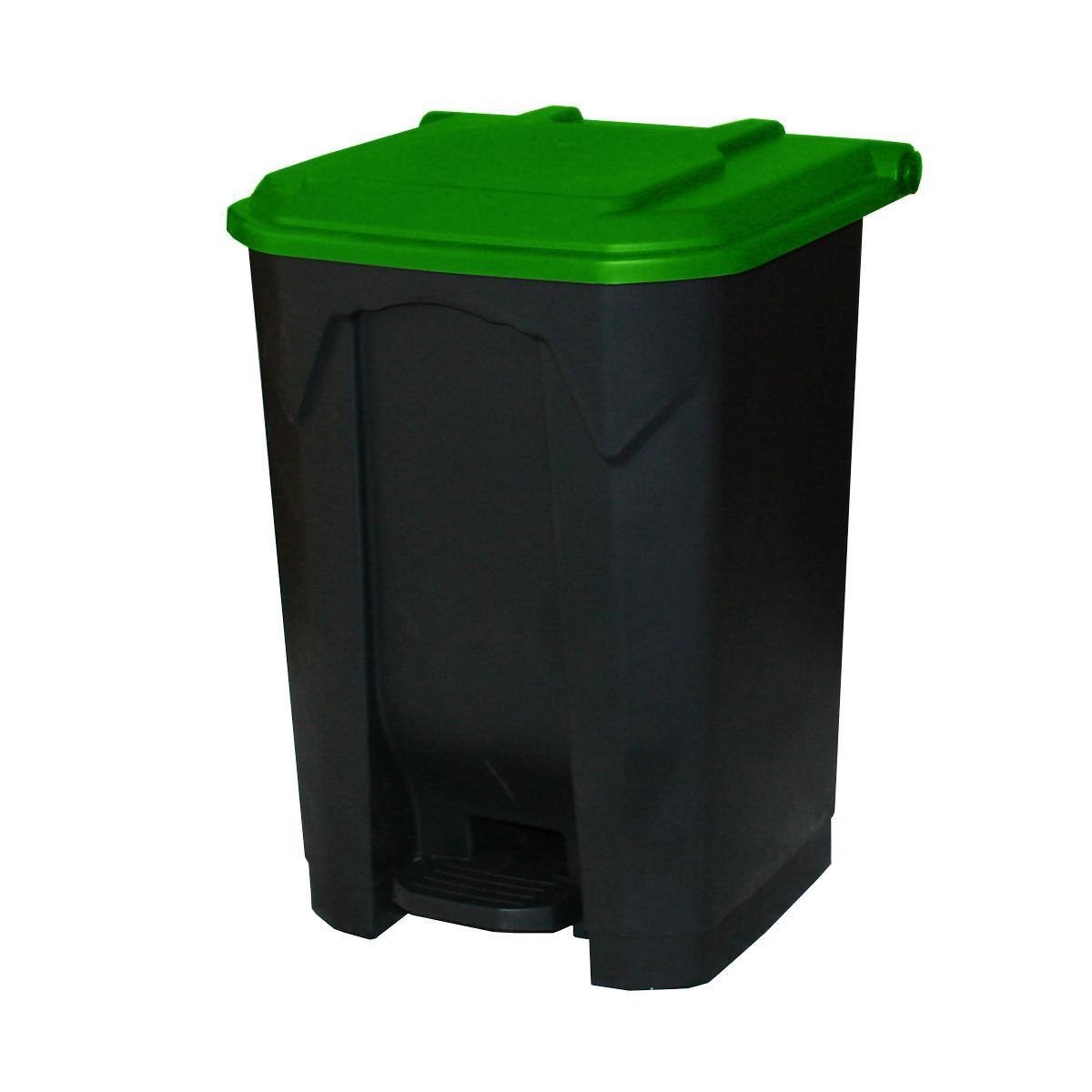 50L Plastic Pedal Waste Bin Rubbish Black with Green Lid Recycling Home Garden