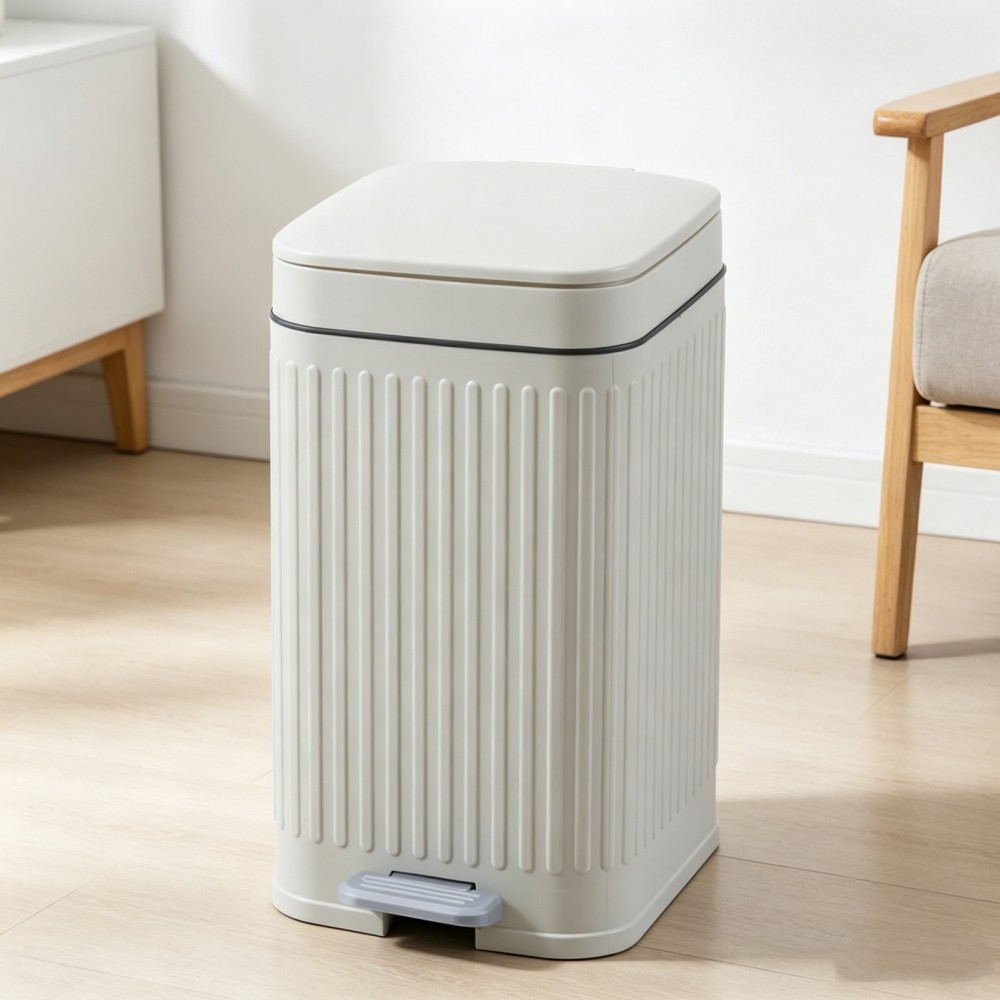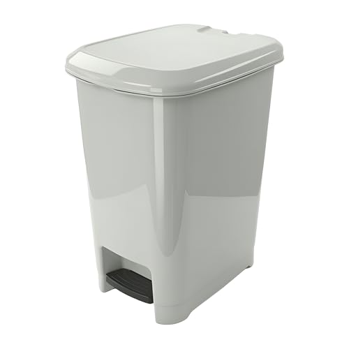 Optimal Products Plastic Square10,25 & 40L White & Grey Pedal Lid Bin Waste Garbage Indoor Outdoor Garden Kitchen Recycling DustBin (Light Grey, 40L)