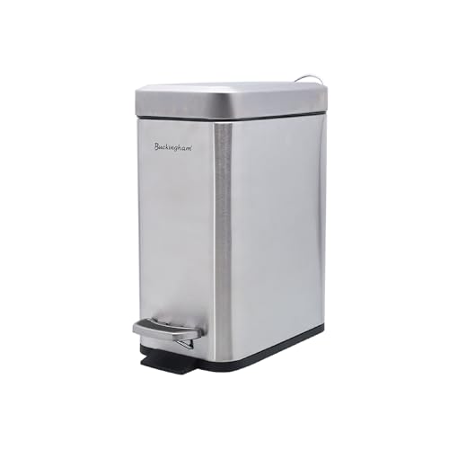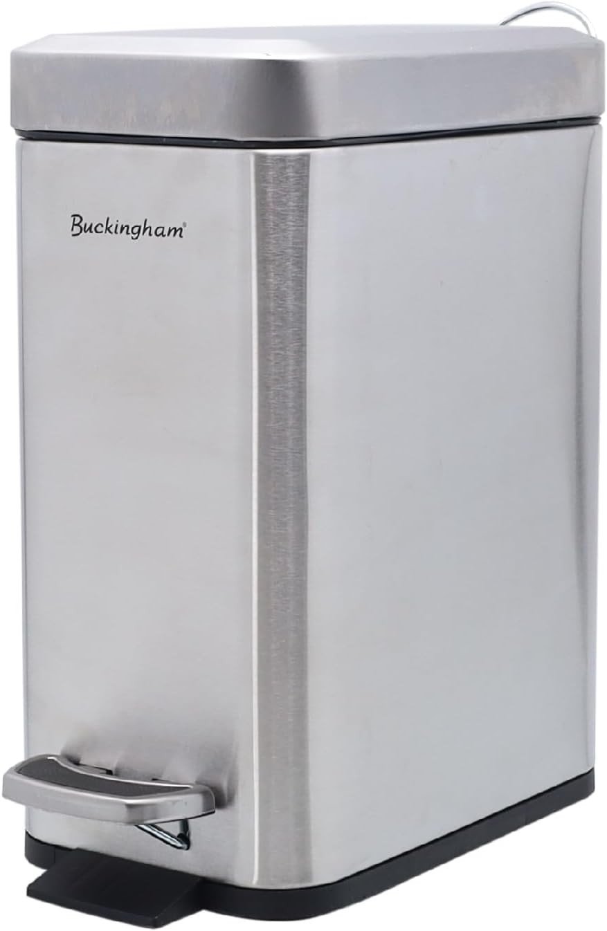 Buckingham Pedal Bin Waste Trash Bin for Bathroom Kitchen Office, Stainless Steel Soft Closing Slimline, Brushed Finish, 5 Litre