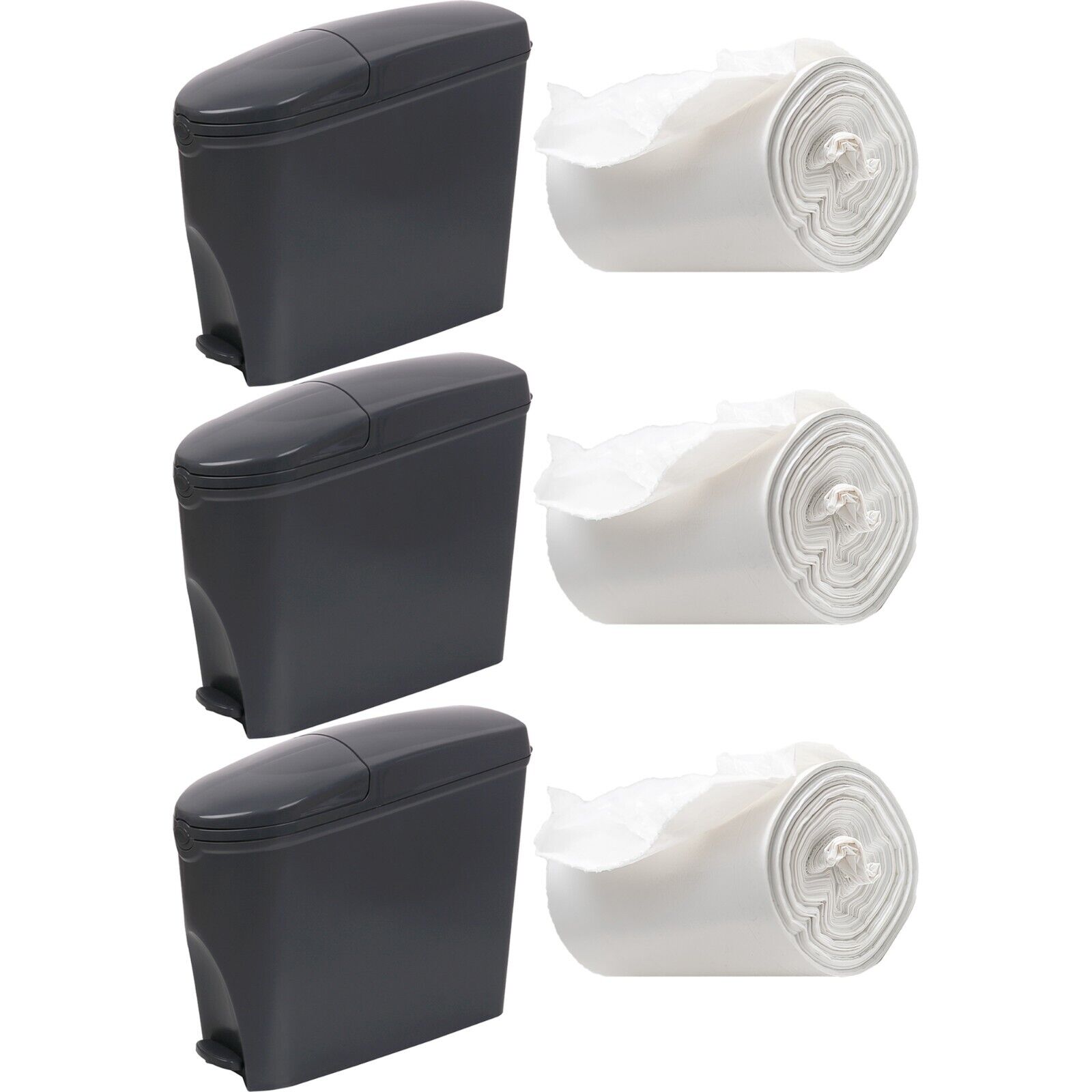 Grey Sanitary Waste Pedal Bin 3 x 20L Feminine Hygiene Disposal & 150 Liners