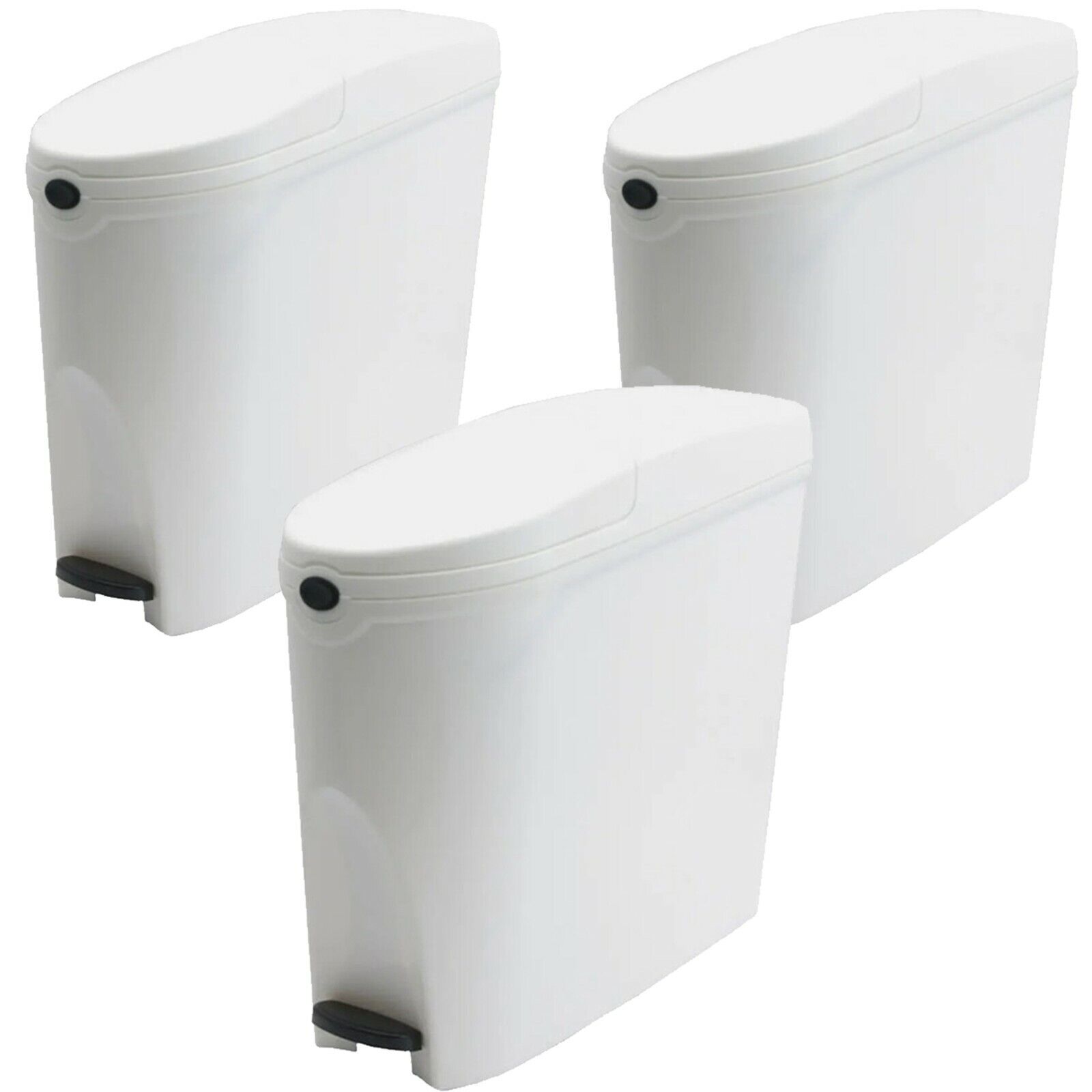 3 x White Sanitary Waste Pedal Bin Sani Feminine Hygiene Disposal Toilet 20L