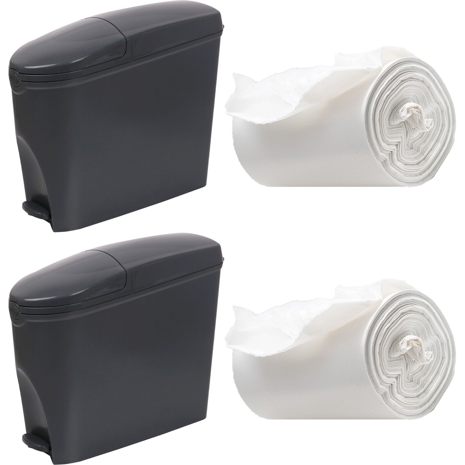 Grey Sanitary Waste Pedal Bin 2 x 20L Feminine Hygiene Disposal & 100 Liners