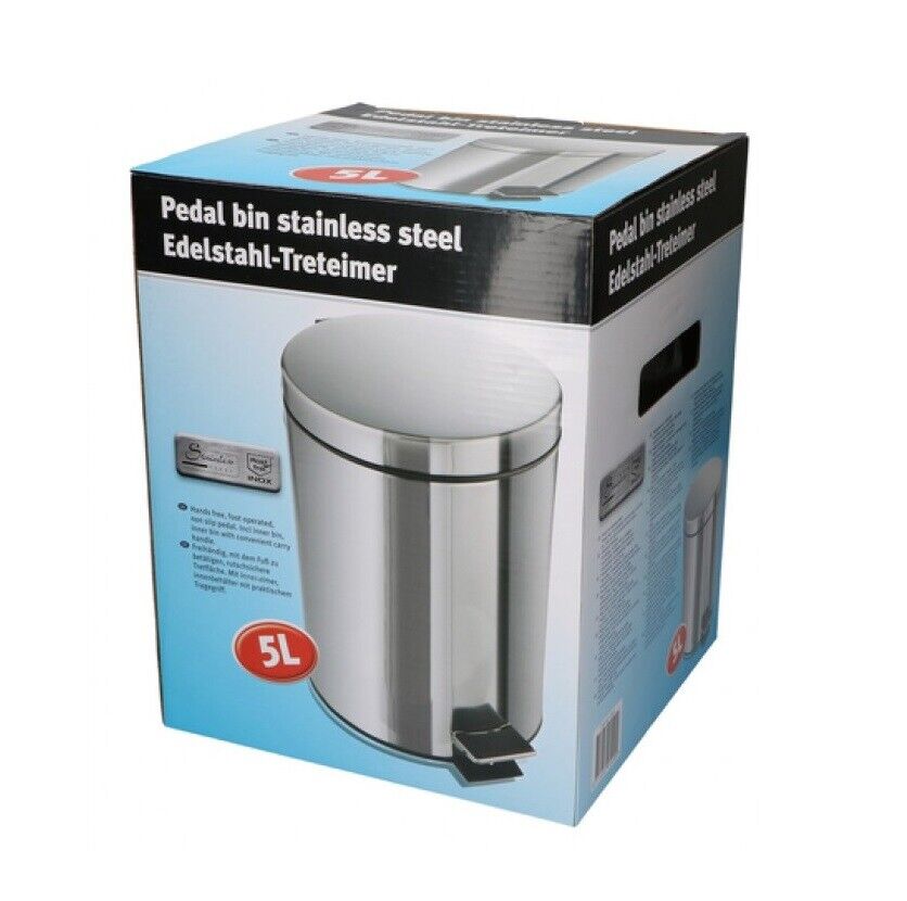 Stainless Steel 5L Pedal Bin Waste Bin Dust Rubbish Home Bathroom Kitchen Office
