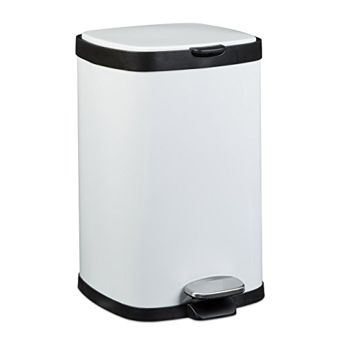 Relaxdays Foot Pedal Waste Bin, 12 L, Metal, Size: 40.5 x 26.5 cm Large with Foot Pedal, White