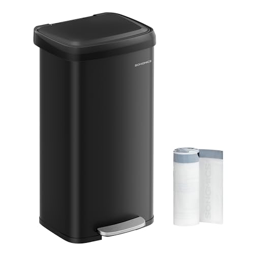 SONGMICS Kitchen Bin, 13 Gallon (50 L) Rubbish Bin, Metal Waste Pedal Bin with Lid, Tall and Large, Silver and Black LTB530E50