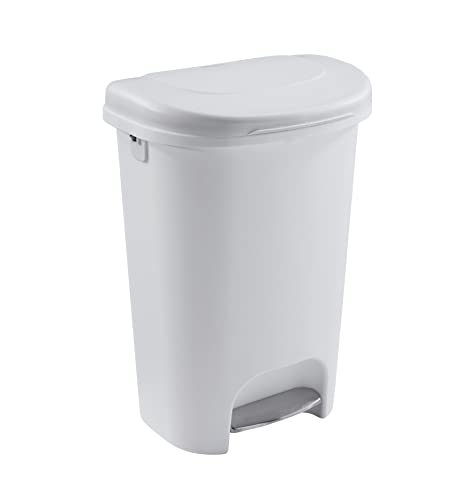 Rubbermaid Classic 13 Gallon Premium Step-On Trash Can with Lid and Stainless-Steel Pedal, White Waste Bin for Kitchen