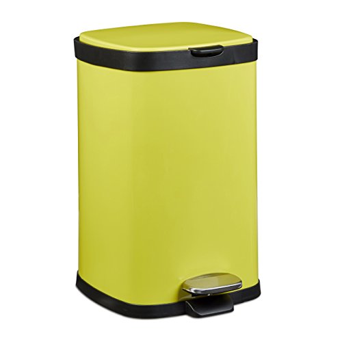 Relaxdays Foot Pedal Waste Bin, 12 L, Metal, Size: 40.5 x 26.5 cm Large with Foot Pedal, Yellow